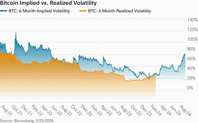 Beleggers kijken vaak naar optiemarkten om in te schatten hoe heftig de koers van bitcoin zal bewegen. Maar daar zit…